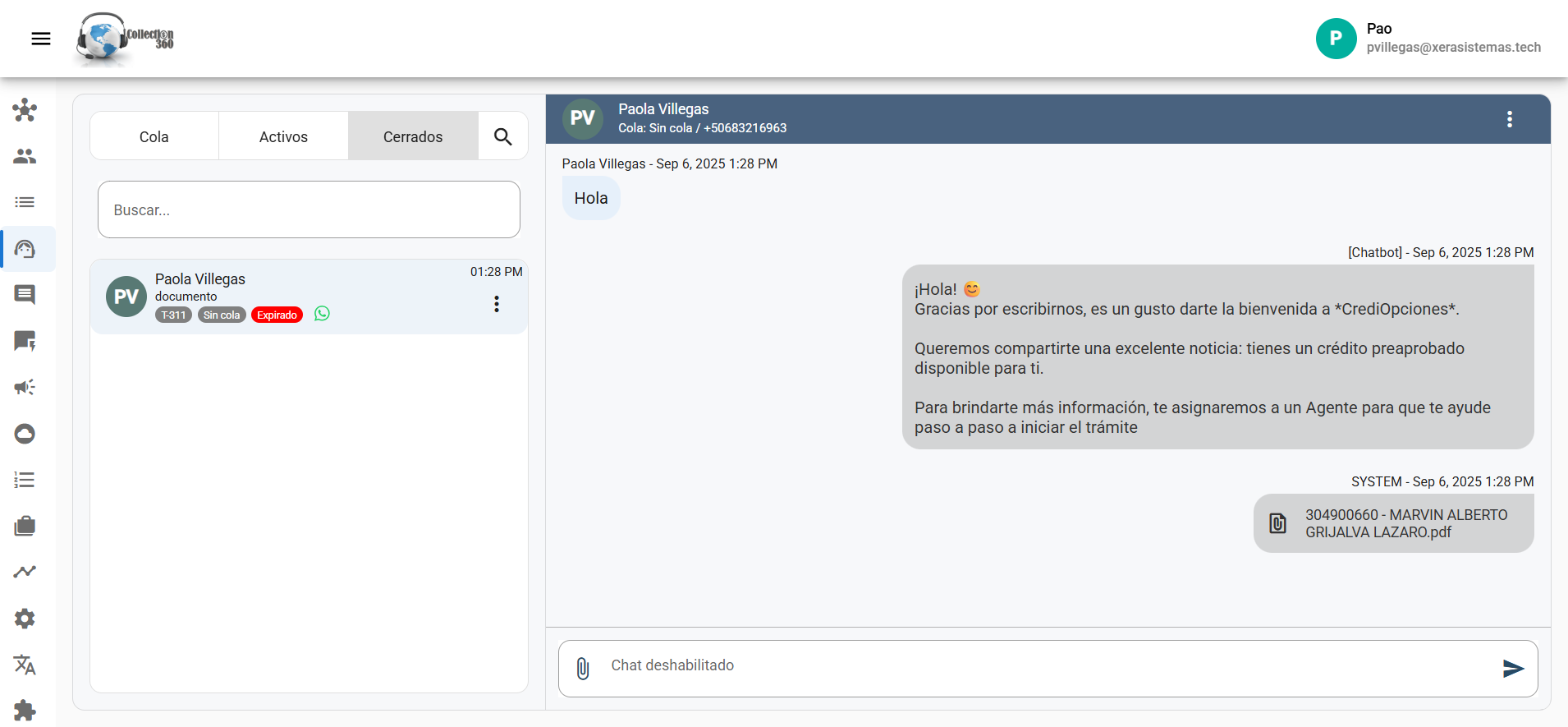 Sí. Con Nyssa IA puedes enviar documentos PDF totalmente personalizados después de que el cliente interactúe contigo, dentro de la ventana de 24 horas establecida por Meta. Estos archivos pueden extraerse de cualquier repositorio que utilices, como SharePoint, Google Drive u otros sistemas de gestión documental, lo que te permite compartir facturas, cotizaciones, confirmaciones u otro tipo de documentos adaptados a cada cliente, de forma rápida, integrada y segura.